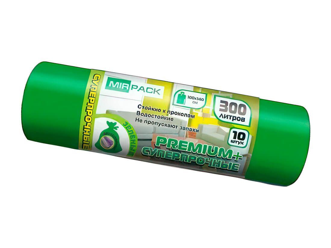 Мешки для мусора 300 л, зеленые, в рулоне 10 шт., ПВД 70 мкм, 1400х1000 мм, PREMIUM+, 300101601