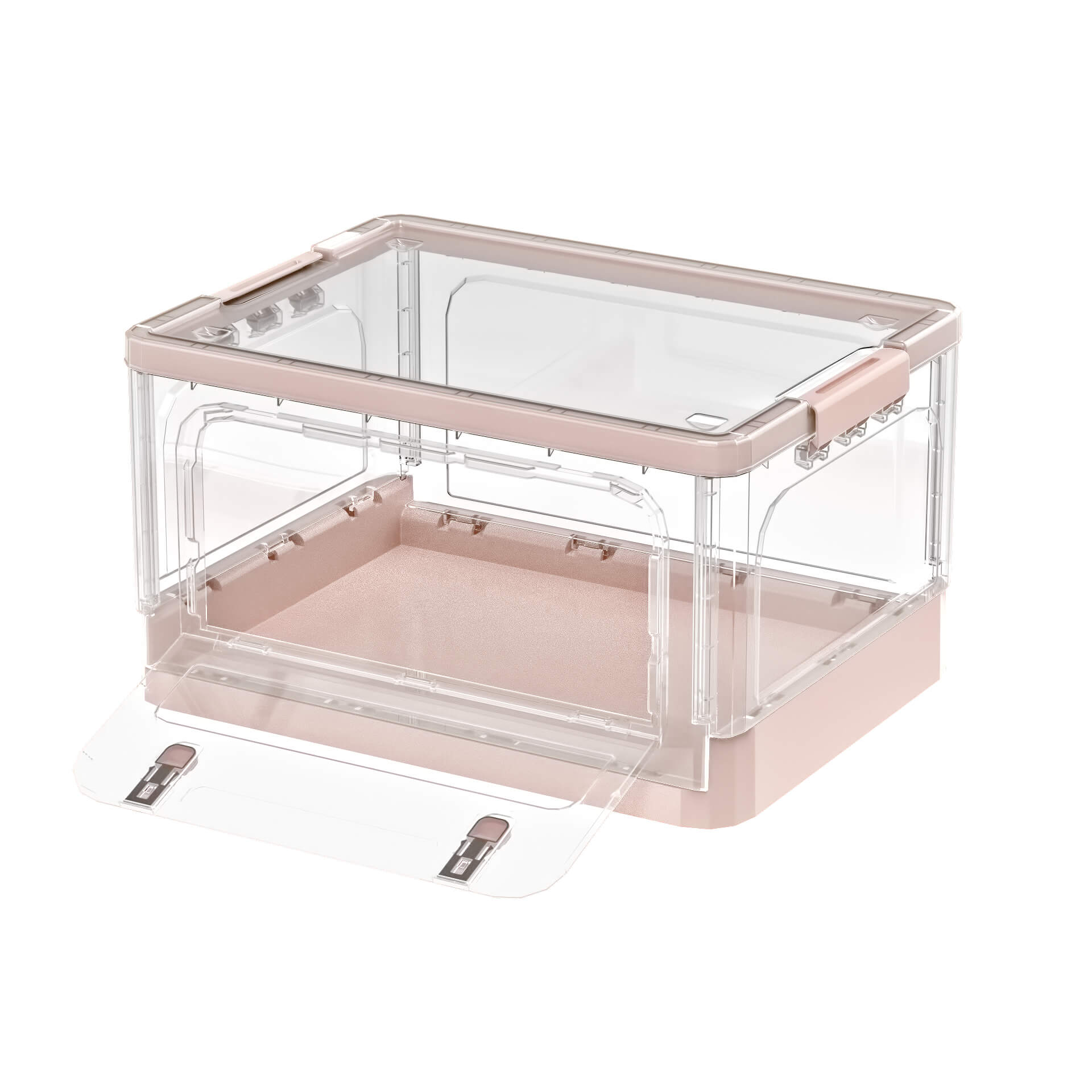 Функциональный пластиковый складной ящик – идеальное решение для организации пространства. Прозрачные стенки позволяют легко видеть содержимое, а нежно-розовое дно придает изделию аккуратный и современный вид. Пластиковый контейнер отлично подходит для хранения одежды, игрушек, бытовых принадлежностей, документов и других мелочей.